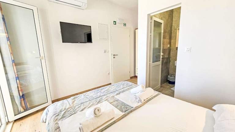 Die Ferienwohnung verfügt über 2 Schlafzimmer, einen TV mit Satellitenkanälen, eine gut ausgestattete Küche mit Kühlschrank und Herdplatte sowie 2 Badezimmer mit Dusche. Bettwäsche, Handtücher und Wäsche werden nach Richtlinien der örtlichen Behörden gewaschen.
