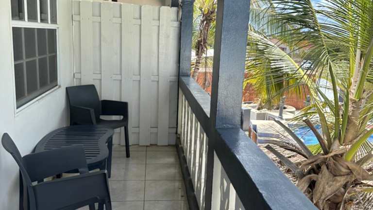 Das Studio - begane grond - poolside bietet gemütliche Wohneinheiten mit kostenlosem Wifi und Klimaanlage. Gäste können den Garten und die Terrasse nutzen, die zum Entspannen einladen. Die Veranda oder das Patio bietet einen Blick auf den Pool.