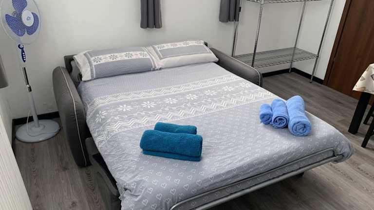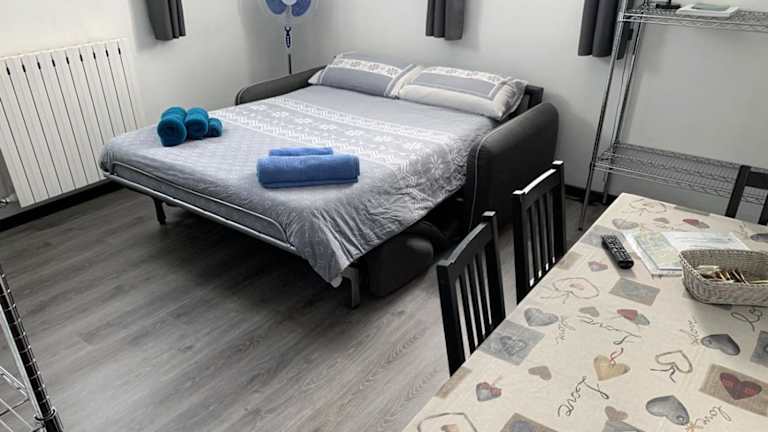 Die Ferienwohnung umfasst ein Schlafzimmer, ein Wohnzimmer, eine voll ausgestattete Küche mit Kühlschrank und Kaffeemaschine sowie ein Badezimmer mit Bidet und Dusche. Ein Flachbild-TV ist ebenfalls vorhanden.