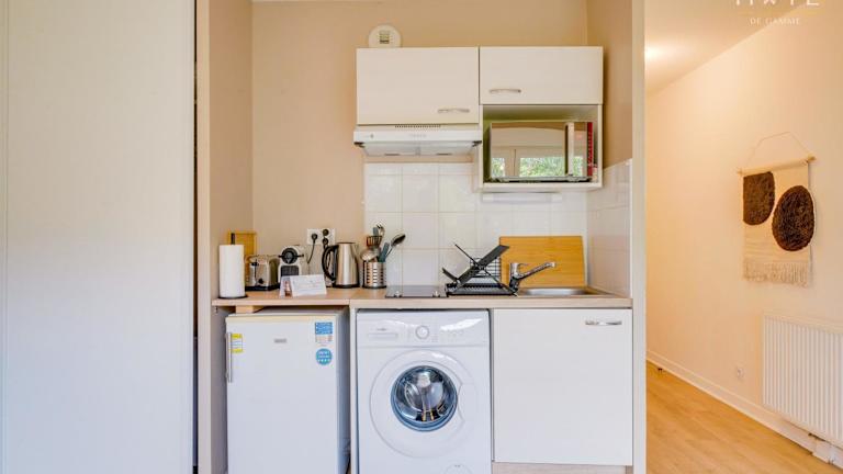 Das Studio verfügt über ein Schlafzimmer und ist mit kostenlosem WLAN, einem Flachbild-TV, einer Waschmaschine sowie einer Küche ausgestattet, die einen Kühlschrank und eine Mikrowelle umfasst. Handtücher und Bettwäsche werden bereitgestellt.