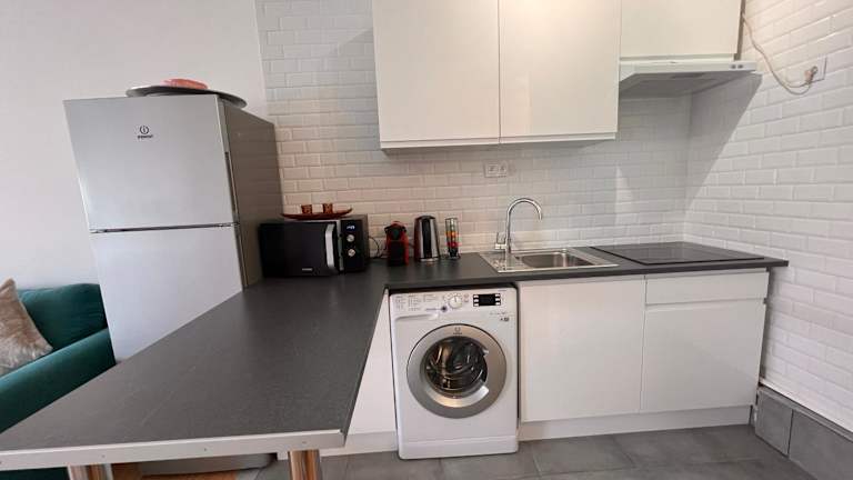 Die Ferienwohnung besteht aus 1 Schlafzimmer und einem Wohnzimmer. Eine voll ausgestattete Küche mit Kühlschrank und Kaffeemaschine ist vorhanden. Das Badezimmer bietet eine Dusche und kostenlose Pflegeprodukte. Handtücher und Bettwäsche werden zur Verfügung gestellt.