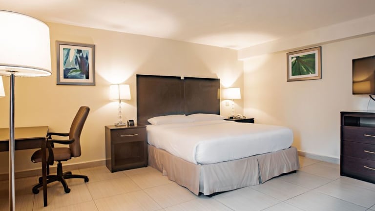Die klimatisierten Zimmer der Unterkunft sind mit einem Schreibtisch, einem Safe, einem Flachbild-TV und einem eigenen Badezimmer mit einer Dusche ausgestattet. Alle Zimmer sind mit Bettwäsche und Handtüchern versehen.