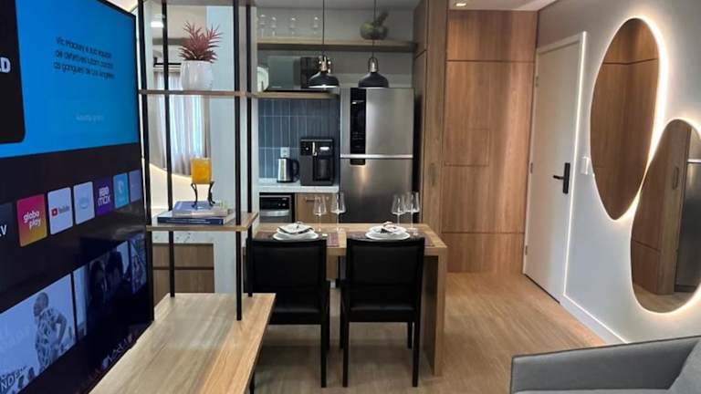 Das Studio Cosmopolita - Novo - possui automação bietet einen modernen, automatisierten Aufenthalt. Gäste profitieren von kostenlosem Wifi und einer Privatparkiermöglichkeit vor Ort.