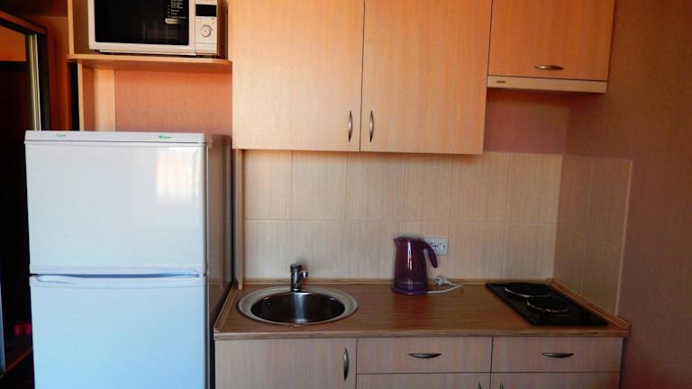 Die Wohneinheiten umfassen eine voll ausgestattete Küche mit Kühlschrank, Mikrowelle sowie Herdplatte. Zudem stehen kostenlose Pflegeprodukte im eigenen Badezimmer zur Verfügung, was zur Bequemlichkeit der Gäste beiträgt.