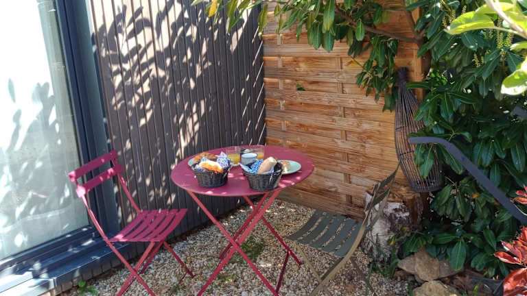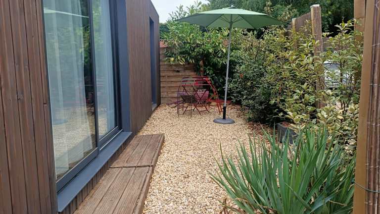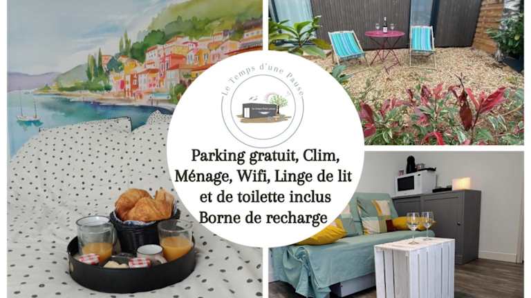 Studio de Jardin "Le Temps d une Pause" bietet Platz für bis zu 4 Personen und ist mit Klimaanlage sowie einer Borne zur Ladung von Elektrofahrzeugen ausgestattet. Die Unterkunft bietet ein Nichtraucherumfeld, einen Garten und eine Terrasse. Die Check-in-Zeiten sind zwischen 17:00 und 23:30 Uhr, und der Check-out findet zwischen 09:30 und 10:00 Uhr statt. Es sind keine Junggesellenabschiede oder ähnliche Feiern erlaubt. Die Unterkunft hat einen Sicherheitsalarm und wird regelmässig desinfiziert.