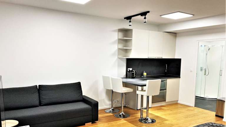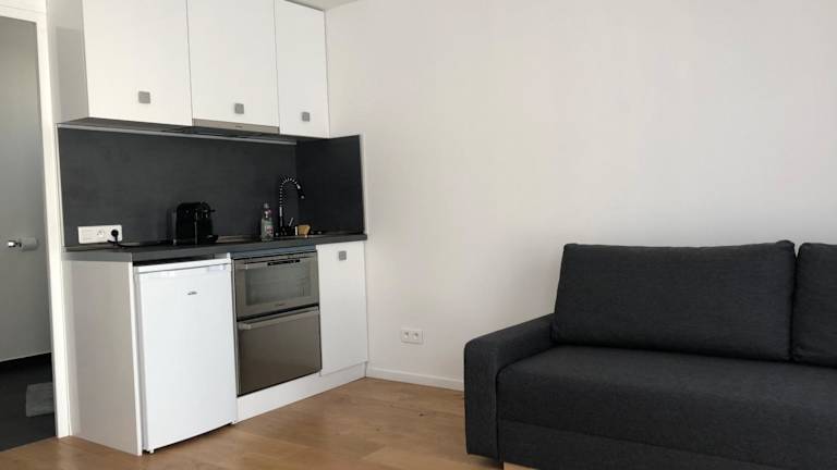 Die Unterkunft verfügt über eine eigene Küchenzeile, die mit einem Kühlschrank, Geschirrspüler, Ofen, Mikrowelle und Herdplatte ausgestattet ist. Zudem sind eine Kaffeemaschine und ein Wasserkocher vorhanden, was die Zubereitung von Mahlzeiten und Getränken ermöglicht.