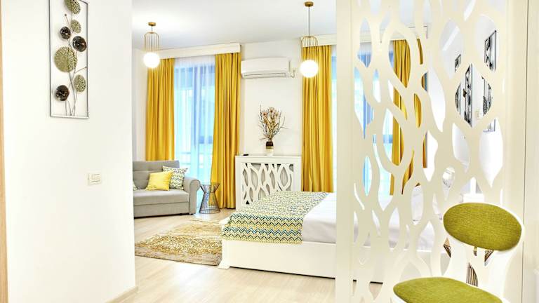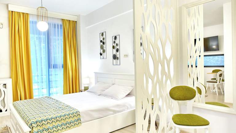 Die Unterkunft Studio Golden befindet sich in Mamaia Nord – Năvodari, nur 300 m vom Strand Mamaia entfernt. Ovidiu-Platz ist 16 km entfernt, und die Dobrudscha-Schluchten liegen 41 km von der Unterkunft. Der Siutghiol-See befindet sich 5,3 km entfernt, während das Einkaufszentrum City Park Mall 11 km weit weg ist. Der nächstgelegene Flughafen ist der 21 km entfernte Flughafen Mihail Kogălniceanu.