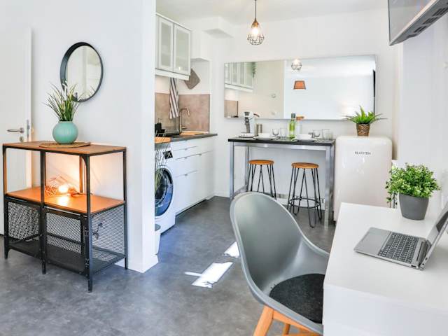 Das Studio HIRSCH56 - Zentral-Ruhig-Terrasse-Netflix bietet eine ruhige und heimelige Atmosphäre mit einem Balkon sowie Zugang zu kostenlosem Wifi.