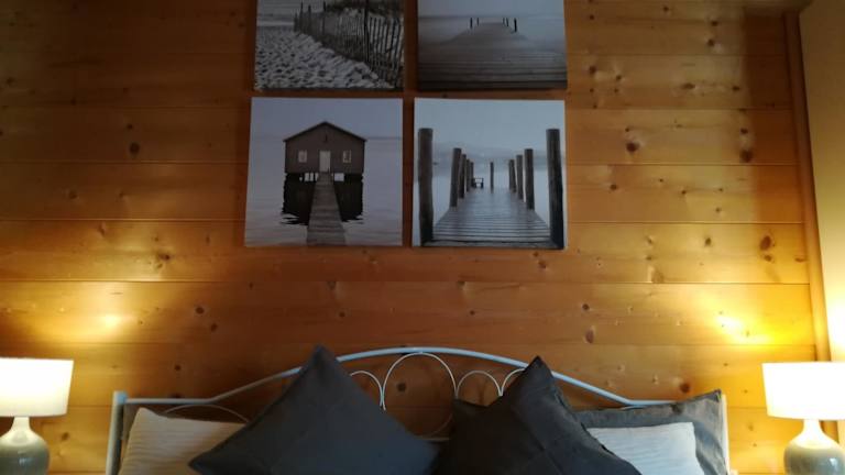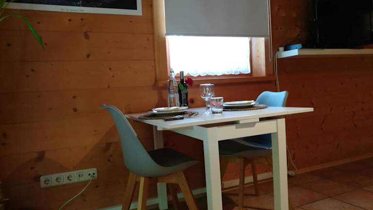Das Studio im Blockhaus am Chiemsee bietet eine komfortable Übernachtungsmöglichkeit mit Gartenblick. Die Unterkunft umfasst ein Schlafzimmer und ein Badezimmer sowie eine voll ausgestattete Küche.