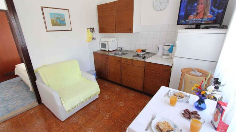 Die Unterkunft Studio in Vantacici - Insel Krk 14419 verfügt über einen Garten und eine Terrasse. Die klimatisierte Ferienwohnung bietet eine Bequemlichkeit für Gäste, die einen ruhigen Aufenthalt in der Nähe des Strandes suchen.