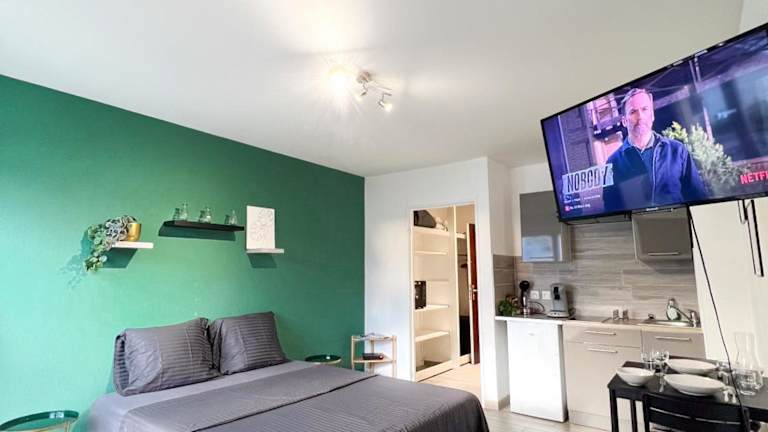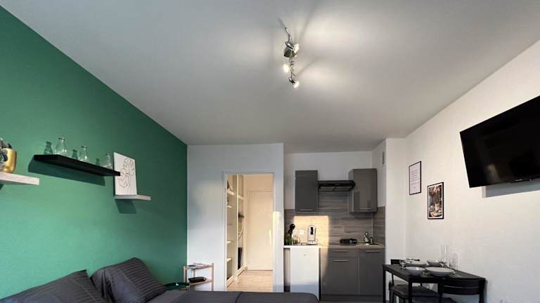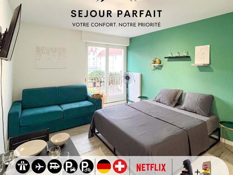Das Studio Le Maréchal - Près frontière et Netflix bietet Übernachtungsmöglichkeiten in Form einer Ferienwohnung an, ausgestattet mit einem Flachbild-TV und kostenlosem WLAN. Die Unterkunft sieht keine Junggesellen-/Junggesellinnenabschiede oder ähnliche Feiern vor und ist rauchfrei. Es bestehen verschiedene Sicherheitsmaßnahmen, darunter das Tragen von Gesichtsmaske durch das Personal und die Verwendung von Reinigungsmitteln, die gegen das Coronavirus wirksam sind.