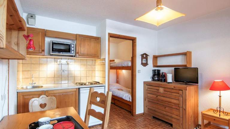 Die Ferienwohnung umfasst ein Schlafzimmer, ein gemütliches Wohnzimmer, einen TV sowie eine gut ausgestattete Küchenzeile mit Kühlschrank und Ofen. Das Badezimmer verfügt über eine Badewanne oder Dusche.