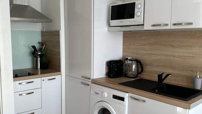 Die Ferienwohnung verfügt über 1 Schlafzimmer, ein Wohnzimmer und eine voll ausgestattete Küche mit Kühlschrank und Kaffeemaschine. Außerdem gibt es ein Badezimmer mit Dusche. Für zusätzlichen Komfort können Handtücher und Bettwäsche gegen Aufpreis bereitgestellt werden.