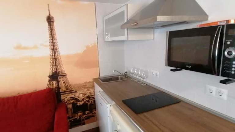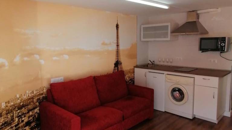 Die Ferienwohnung besteht aus einem Schlafzimmer, einer Küche mit Kühlschrank und Mikrowelle sowie einem Badezimmer mit Dusche und kostenlosen Pflegeprodukten. Eine Waschmaschine und ein Flachbild-TV sind ebenfalls vorhanden.