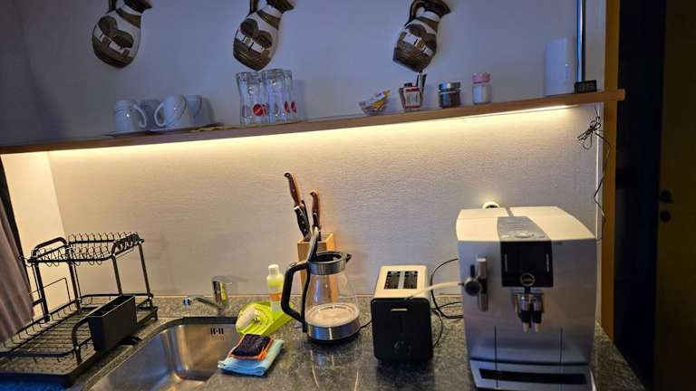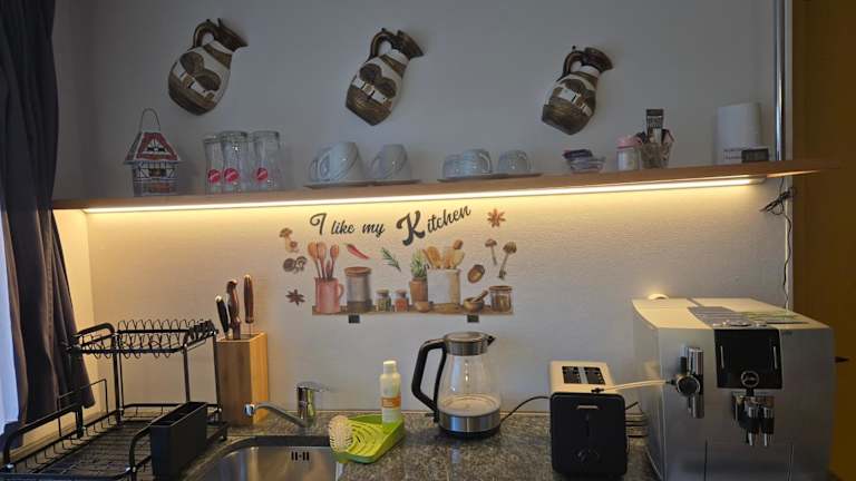 Die Ferienwohnung verfügt über 1 Schlafzimmer und ist mit einem Flachbild-TV mit Kabelkanälen ausgestattet. Eine gut ausgestattete Küchenzeile mit Kühlschrank und Herdplatte sowie 1 Badezimmer mit Dusche sind ebenfalls vorhanden. Handtücher und Bettwäsche werden bereitgestellt.