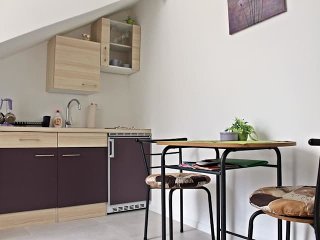 Die Ferienwohnung verfügt über ein Schlafzimmer, eine vollständig ausgestattete Küchenzeile mit Kühlschrank und Herdplatte sowie ein Badezimmer mit Dusche und kostenlosen Pflegeprodukten. Handtücher und Bettwäsche werden bereitgestellt. Allergikerfreundliche Zimmer sind verfügbar.