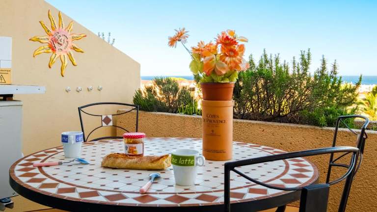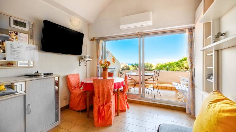 Das Studio - Mer Soleil Confort bietet eine gemütliche Unterkunft mit Meerblick. Es verfügt über eine eigene Terrasse, eine Kaffeemaschine sowie eine klimatisierte Umgebung. Den Gästen stehen ein Privatparkplatz vor Ort sowie kostenloses WLAN zur Verfügung. Die Ferienwohnung ist ideal für Gäste, die eine ruhige und entspannte Atmosphäre suchen.