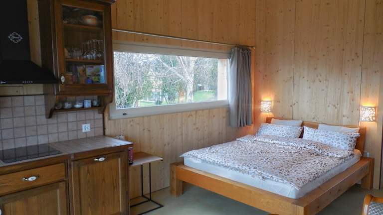 Die Ferienwohnung ist mit einem Schlafzimmer, einer voll ausgestatteten Küche mit Kühlschrank und Herdplatte sowie einem Badezimmer mit Dusche und Haartrockner ausgestattet. Handtücher und Bettwäsche werden bereitgestellt.