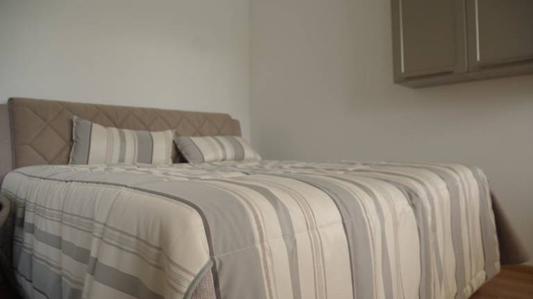 In manchen Wohneinheiten gibt es eine Küche mit Kühlschrank, Geschirrspüler und Ofen.