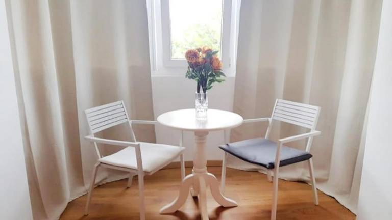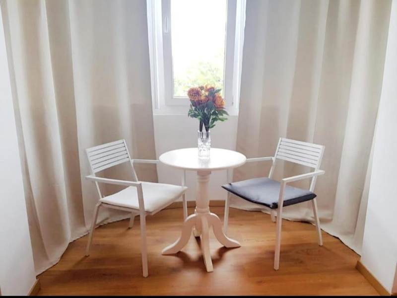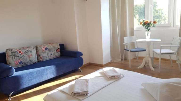 Die Ferienwohnung verfügt über ein Schlafzimmer mit einem Doppelbett und einer ausziehbaren Couch, ideal für bis zu vier Personen. Die Klimaanlage sorgt für eine angenehme Bequemlichkeit. Ein Badezimmer mit Badewanne oder Dusche ist ebenfalls vorhanden sowie die Bereitstellung von Handtüchern und Bettwäsche.