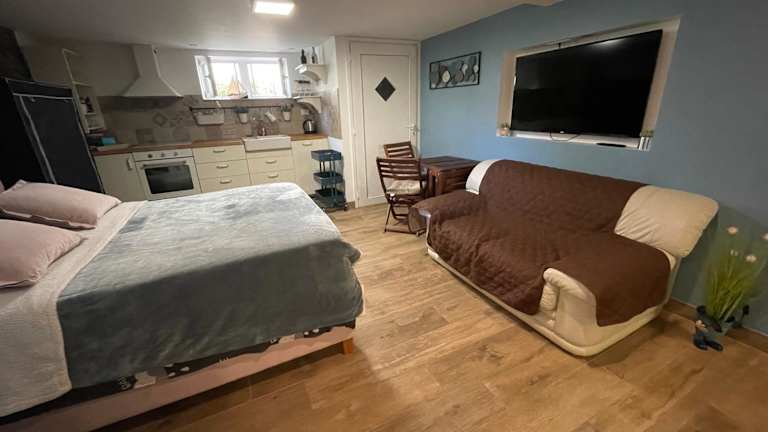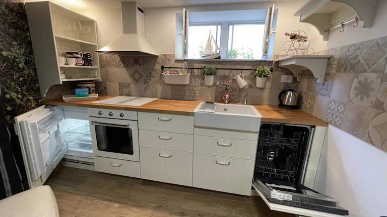 Die Ferienwohnung umfasst 1 Schlafzimmer und ist ausgestattet mit einem Flachbild-TV sowie einer voll ausgestatteten Küche. Diese Küche beinhaltet einen Kühlschrank, einen Geschirrspüler, eine Waschmaschine, einen Ofen und eine Herdplatte. Handtücher und Bettwäsche werden bereitgestellt.