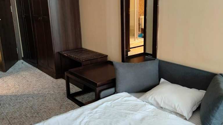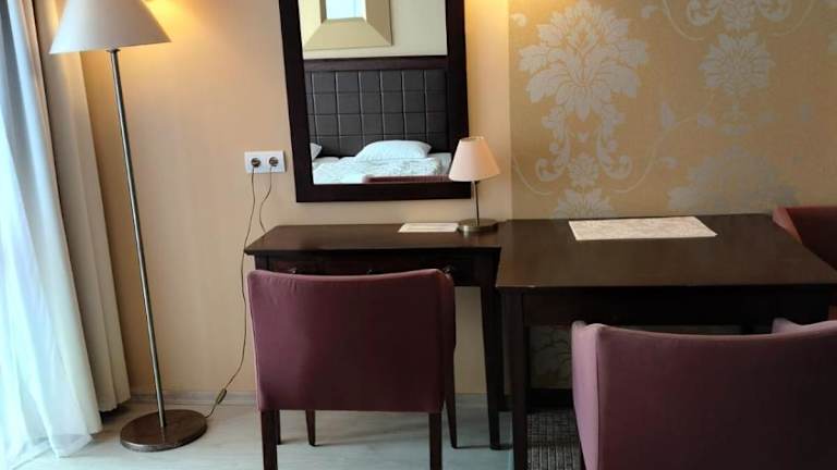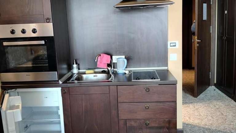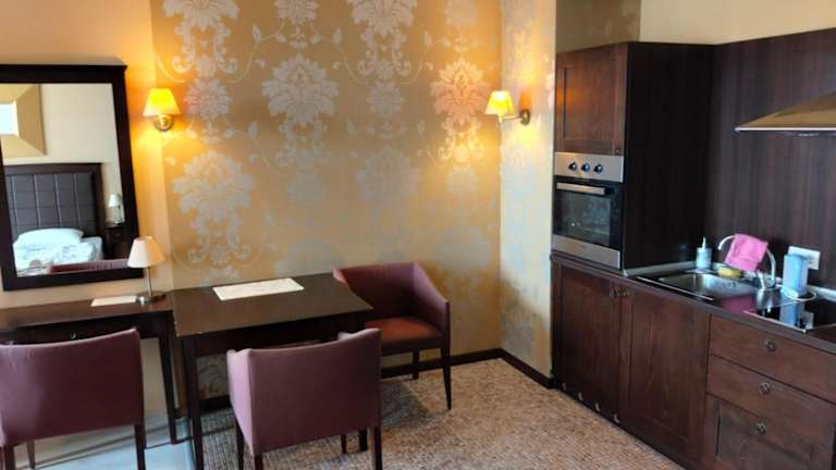 Die Apartments sind elegant mit dunklen Holzmöbeln und weinfarbenen Stoffen ausgestattet. Jedes Apartment verfügt über eine gut ausgestattete Küche und einen privaten Balkon. Zu den Annehmlichkeiten gehören eine Klimaanlage und Kabel-TV. Die Reinigung der Apartments erfolgt einmal wöchentlich.