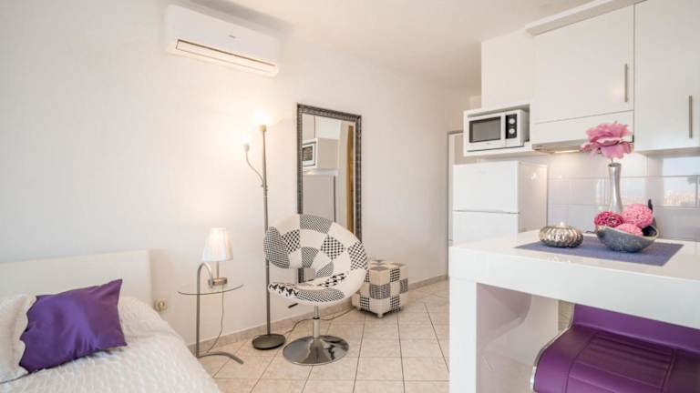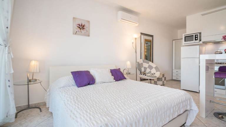 Die Ferienwohnung ist klimatisiert und enthält ein Schlafzimmer sowie eine Küche. Für Familien steht ein Babybett kostenlos zur Verfügung.