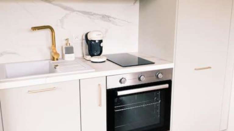 Die Ferienwohnung verfügt über ein Schlafzimmer, kostenloses Wifi, Flachbild-TV, eine Waschmaschine sowie eine Küche mit Kühlschrank und Ofen.