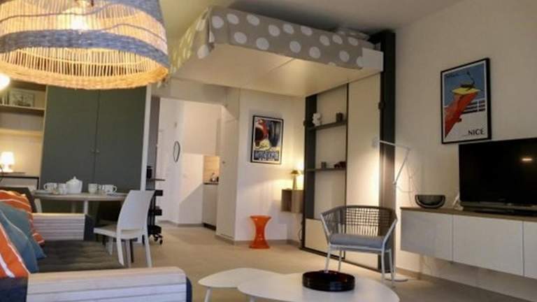 Die Unterkunft befindet sich in Villeneuve-Loubet, nur 200 m vom Strand Plage de la Batterie entfernt. Die nächsten attraktiven Sehenswürdigkeiten sind das Rugby- und Fussballstadion Allianz Riviera sowie die Russisch-orthodoxe Kathedrale Saint-Nicolas, die beide 14 bis 15 km entfernt liegen. Der Flughafen Aéroport Nice Côte d’Azur ist 9 km von der Unterkunft entfernt.
