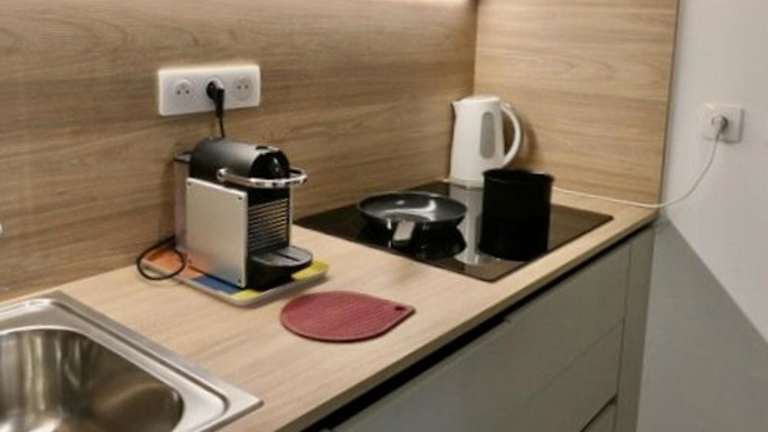 Die Ferienwohnung ist mit einer voll ausgestatteten Küche versehen, die einen Kühlschrank, einen Geschirrspüler, einen Ofen und eine Kaffeemaschine umfasst. Dadurch sind die Gäste in der Lage, ihre eigenen Mahlzeiten zuzubereiten und sich eine angenehme Zeit zu Hause zu schaffen.