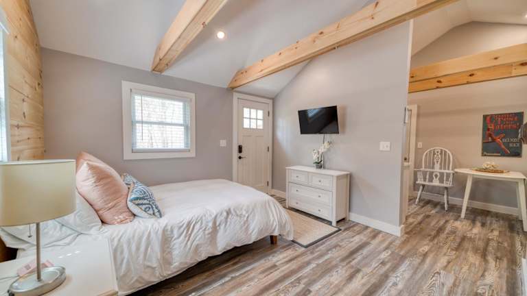 Die Unterkunft Studio with Deck by Leavetown Vacations bietet ein heiteres Ambiente mit Annehmlichkeiten wie kostenlosem Wifi und einem Privatparkplatz. Die klimatisierte Ferienwohnung verfügt über eine Sonnenterrasse und einen Garten, ideal für entspannte Stunden im Freien.