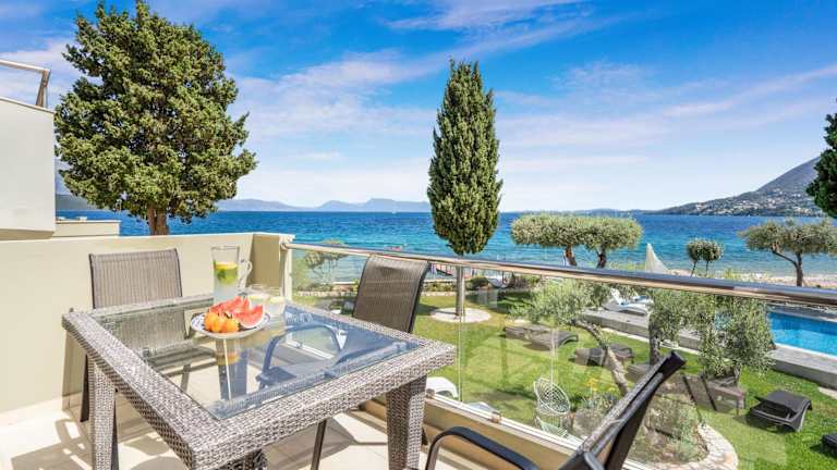 Die Zimmer der Agni Suites verfügen über eine Veranda oder ein Patio, bieten Meerblick und sind mit einem Sitzbereich, einem Kabel Flachbild-TV sowie einer voll ausgestatteten Küche inklusive Kühlschrank, Ofen, Herdplatte, Kaffeemaschine und Wasserkocher ausgestattet. Jedes Zimmer hat ein eigenes Badezimmer mit Dusche und kostenlosen Pflegeprodukten.