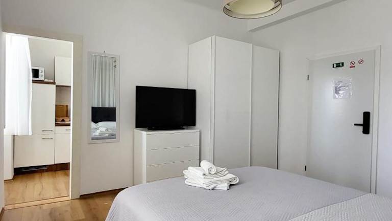 Die Studios sind mit einem Flachbild-Sat-TV ausgestattet und verfügen über ein eigenes Bad mit Badewanne oder Dusche sowie Haartrockner. Nichtraucherzimmer sind vorhanden, und es gibt die Option für ein Zustellbett. Die Zimmer haben Klimaanlage und sind für einen angenehmen Aufenthalt eingerichtet.
