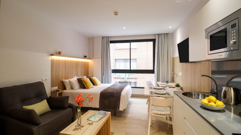 Studios Cielo Madrid bietet Übernachtungsmöglichkeiten mit einer Gemeinschaftslounge, einer Sonnenterrasse sowie einem Tourenschalter, der bei der Planung von Aktivitäten hilfreich ist. Kostenloses Wifi ist in der gesamten Unterkunft vorhanden, und ein Privatparkplatz kann gegen Aufpreis arrangiert werden. Es wird auf eine Nichtraucherumgebung geachtet, und feierliche Veranstaltungen sind in dieser Unterkunft nicht gestattet.