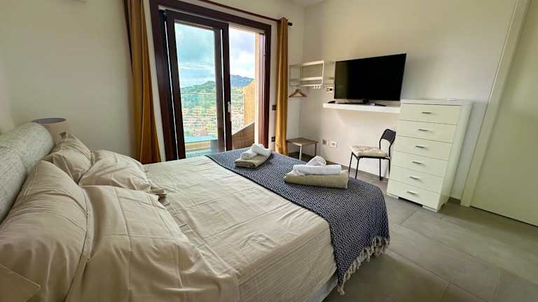 Die Ferienwohnung besteht aus 1 Schlafzimmer, einer voll ausgestatteten Küche, einem Flachbild-TV, einem Sitzbereich und einem Badezimmer mit Bidet. Die Unterkunft bietet zudem eine Terrasse und blickt auf die Stadt und das Meer.