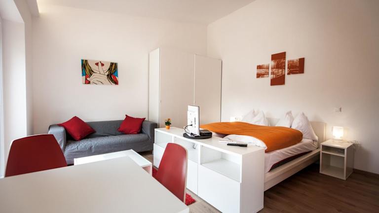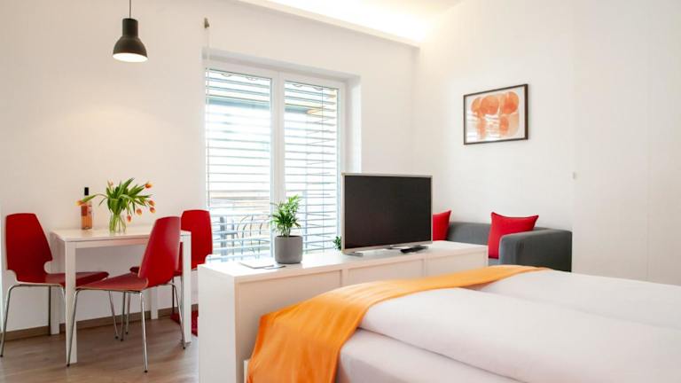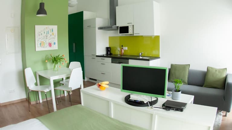 Die Studios + in Graz bieten komfortable Unterkünfte zur Selbstverpflegung mit kostenfreiem WLAN und einem schönen Blick auf den Garten. Die Lage ist ideal, nur wenige Kilometer vom historischen Zentrum entfernt und in der Nähe der Stadthalle Graz. Die Studios sind gut ausgestattet mit einem Wohnbereich, einer Küchenzeile und einem eigenen Badezimmer. Einige Zimmer verfügen auch über einen Balkon. Genießen Sie die Annehmlichkeiten wie den Garten, die Terrasse und den Fahrradverleih. Restaurants und ein Lebensmittelgeschäft sind in der Nähe zu finden und kostenfreie Parkplätze stehen in der Umgebung zur Verfügung. Die öffentlichen Verkehrsmittel sind ebenfalls gut erreichbar.