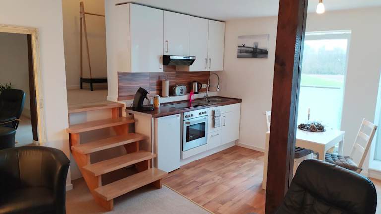 Die Ferienwohnung verfügt über 1 Schlafzimmer, einen Flachbild-TV mit Satellitenkanälen sowie eine gut ausgestattete Küchenzeile mit einem Kühlschrank und einem Ofen. Es gibt ein Badezimmer mit einer Dusche. Handtücher und Bettwäsche sind ebenfalls vorhanden.