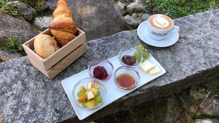 In der Unterkunft wird ein à la carte Frühstück angeboten. Auf Anfrage werden spezielle Speisen für besondere Ernährungsbedürfnisse zubereitet. Ein Café vor Ort sorgt für eine gemütliche Atmosphäre, in der die Gäste entspannen können.
