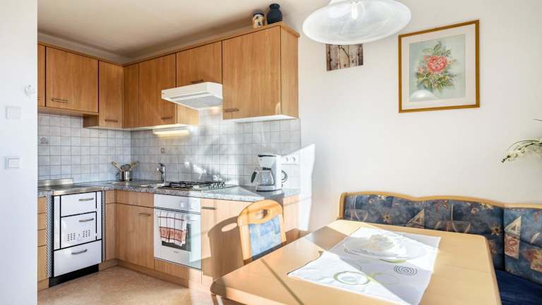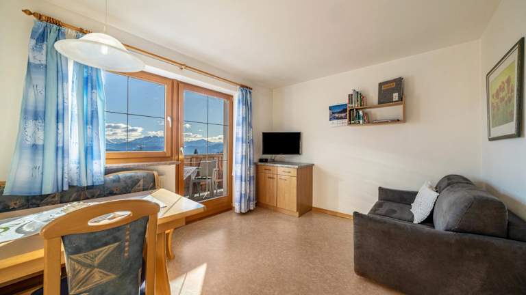 Die Ferienwohnung umfasst ein Schlafzimmer, ein Wohnzimmer, einen TV sowie eine gut ausgestattete Küche mit Kühlschrank und Ofen. Ein Badezimmer mit Dusche, Handtücher und Bettwäsche sind ebenfalls vorhanden.