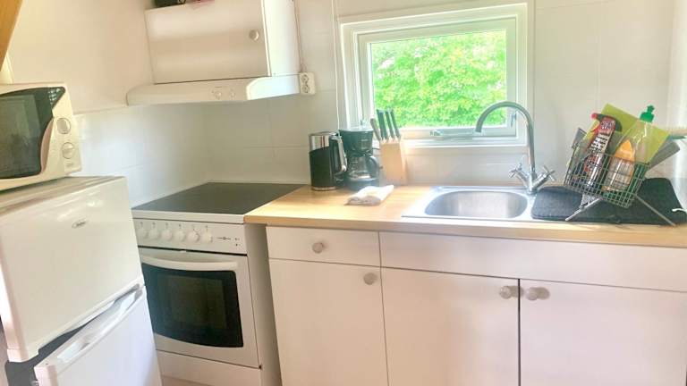 Die Wohneinheiten verfügen über eine eigene Terrasse mit Gartenblick, eine Küchenzeile, die mit einem Kühlschrank sowie einer Herdplatte ausgestattet ist, und ein eigenes Badezimmer mit Dusche. Es gibt auch ein voll ausgestattetes Badezimmer mit Badewanne und kostenlosen Pflegeprodukten. Bettwäsche und Handtücher können gegen Gebühr in der Unterkunft geliehen werden.