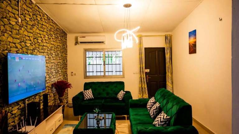 Die Stunning 4-Bed Villa in Cocody Engre Abidjan bietet Übernachtungsmöglichkeiten in einer klimatisierten Villa mit insgesamt 4 separaten Schlafzimmern und 3 Badezimmern. Das Wohnzimmer lädt zu gemütlichen Stunden ein und sorgt für eine heimelige Atmosphäre. Kostenloses WLAN steht den Gästen zur Verfügung.