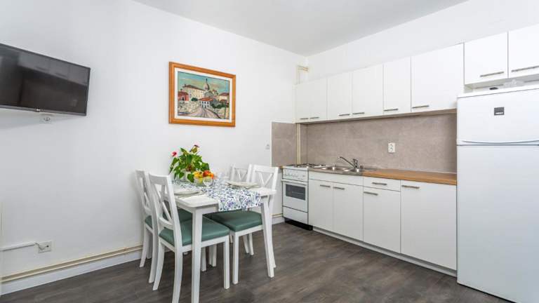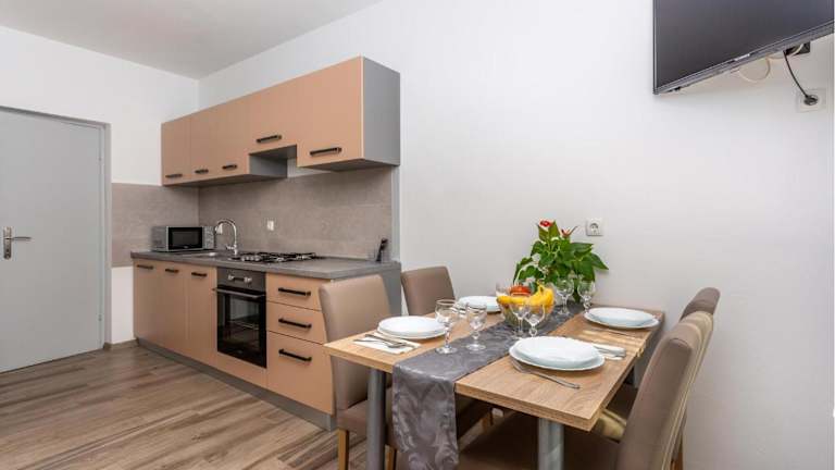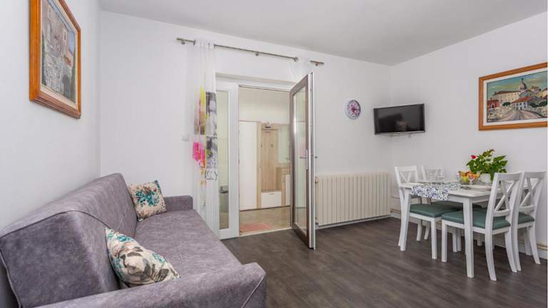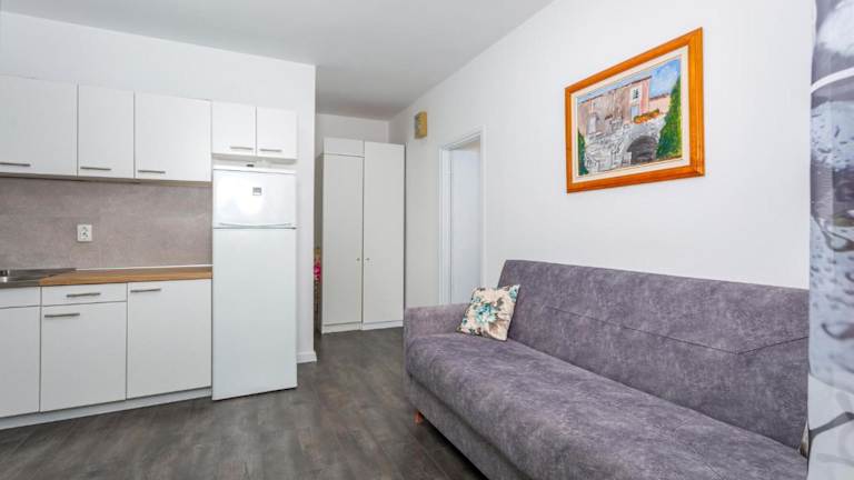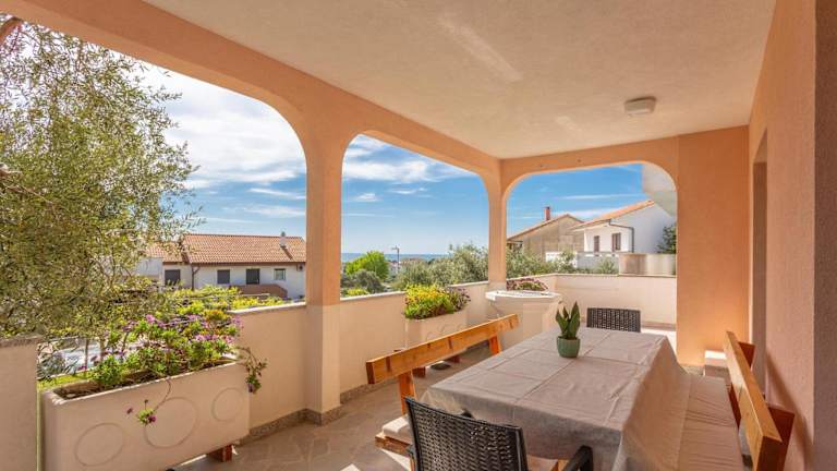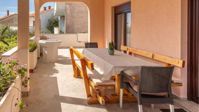 Die Unterkunft befindet sich direkt am Strand in Krk, nur 1,5 km vom Strand Porporela und 5 km vom Kosljun Franciscan Monastery entfernt. Die Umgebung bietet viele Sehenswürdigkeiten, darunter der Yachthafen Punat, welcher 8,4 km und die Burg Trsat, die 48 km entfernt ist. Der Flughafen Rijeka liegt 25 km von der Unterkunft entfernt.