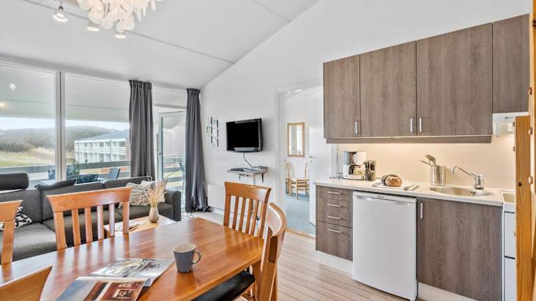 Die gut ausgestattete Wohnung umfasst eine Küche mit Kühlschrank und Geschirrspüler, wodurch eine autarke Verpflegung möglich ist. Für die Bequemlichkeit der Gäste sind zudem Gartenmöbel vorhanden.