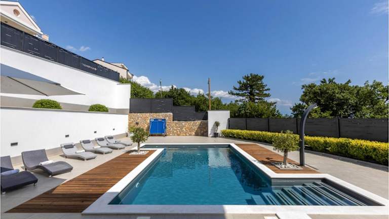 Stunning Home In Crikvenica bietet Übernachtungsmöglichkeiten in einem modernen Ferienhaus mit Meerblick. Die Unterkunft verfügt über einen Whirlpool, einen Balkon und einen Pool, was zu einem entspannten Aufenthalt einlädt. Da in der Unterkunft keine Junggesellen-/Junggesellinnenabschiede oder ähnliche Feiern erlaubt sind, garantiert sie eine ruhige Atmosphäre.
