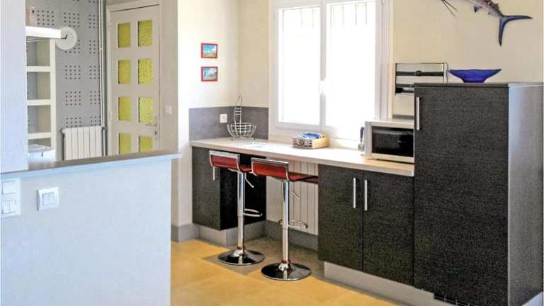 Das Ferienhaus umfasst 4 Schlafzimmer und ein Wohnzimmer mit TV. Die voll ausgestattete Küche ist mit einem Kühlschrank und einem Geschirrspüler versehen. Es gibt 2 Badezimmer, die mit einer Dusche ausgestattet sind.