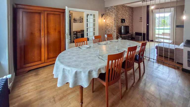 Das Ferienhaus bietet 4 Schlafzimmer, ein Wohnzimmer und eine voll ausgestattete Küche mit Kühlschrank sowie Kaffeemaschine. Es gibt zudem 2 Badezimmer mit Dusche und Haartrockner. Ein Fernseher ist ebenfalls vorhanden.