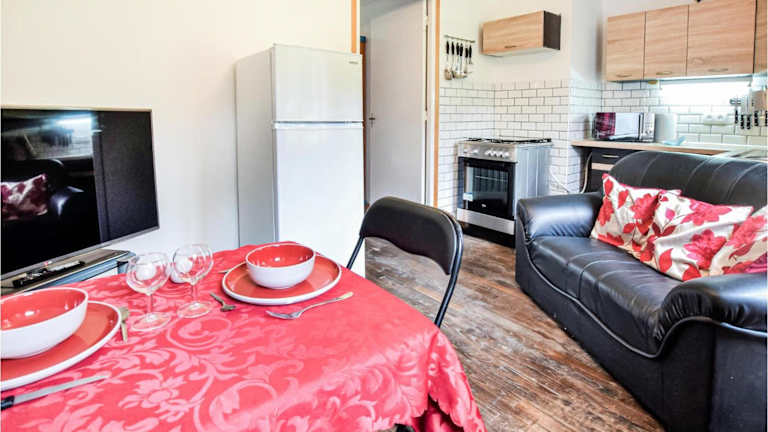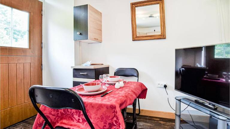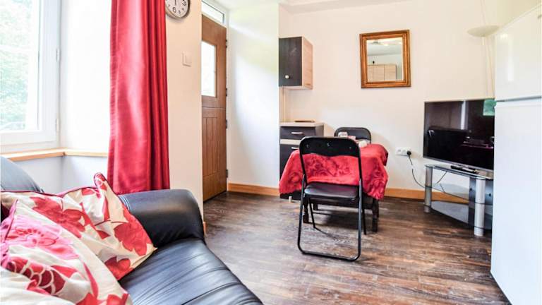 Das Ferienhaus ist ausgestattet mit einem Schlafzimmer und bietet einen TV sowie eine voll ausgestattete Küche. Diese umfasst einen Kühlschrank, einen Ofen, eine Waschmaschine, eine Mikrowelle und eine Herdplatte. Die Einrichtung bietet den Gästen die Möglichkeit, sich selbst zu versorgen und die heimelige Atmosphäre zu geniessen.