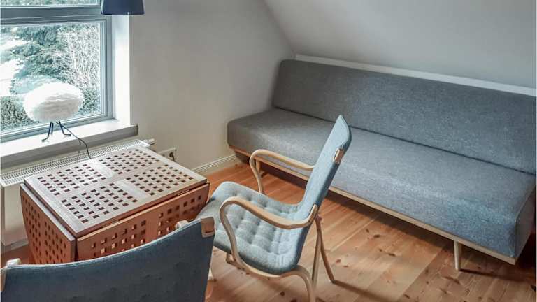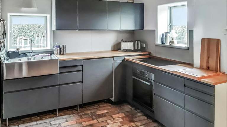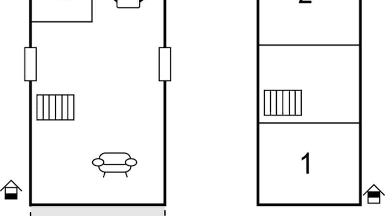Das Ferienhaus umfasst 2 Schlafzimmer, ein Wohnzimmer sowie eine voll ausgestattete Küche mit Kühlschrank und Geschirrspüler.