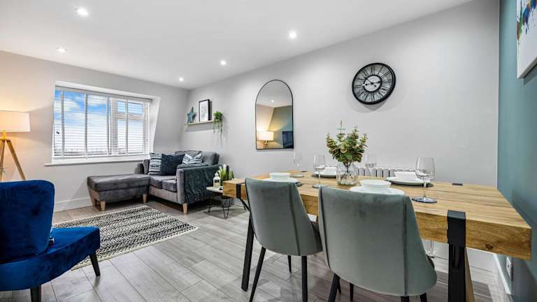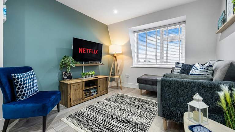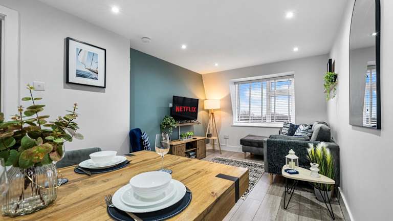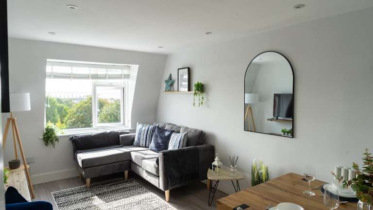 Die Ferienwohnung 2-BR Chic, Cosy Southsea Apt bietet einen herrlichen Blick auf das Meer sowie den Garten. Sie ist geschmackvoll eingerichtet und hinterlässt einen heimeligen Eindruck.
