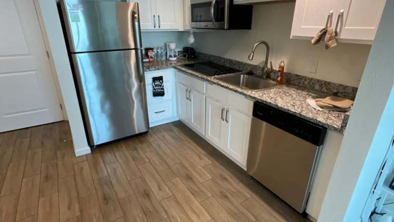 Die Ferienwohnung umfasst 1 Schlafzimmer, einen Fernseher und eine Küche, die mit einem Kühlschrank und einem Geschirrspüler ausgestattet ist. Zudem stehen Handtücher und Bettwäsche zur Verfügung.